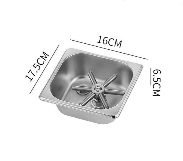 Профессиональная встраиваемая мойка для питчеров (ринзер) 175X160x70 мм со стальным механизмом от китайской компании CoffeeTools. Используется в кофейнях, ресторанах, барах для снижения затрат и повышения эффективности. Вода подается при нажатии. Специальные форсунки увеличивают давление воды. При использовании ринзера снижается потребление воды и увеличивается скорость работы, а питчеры будут идеально чистыми. В комплект входит подвод воды - гибкий шланг ½ дюйма и слив ½ дюйма.